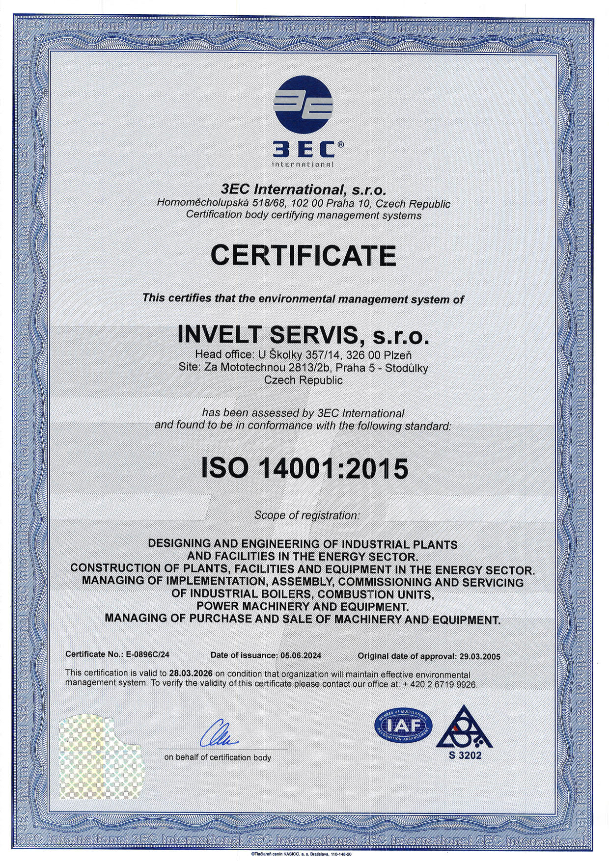 INVELT SERVIS Ltd provides complex services in the energy sector, employs specialists in the energy field, and therefore provides its products and services at high technical level, for acceptable price and in required timeframe all together with ensuring maximal possible reliability and durability. The company heeds principles of the OSH and at the same time approaches the environmental protection responsibly.